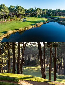 Situated 25km south of the Portuguese capital, PGA Aroeira Lisboa’s golf courses are nestled amid natural pine forest, and the idyllic setting has led to the award-winning resort being nicknamed the ‘Wentworth of Lisbon’ by many observers. Designed by Frank Pennink and meandering through tall avenues of pine forest and surrounded by wildlife and nature, PGA Aroeira 1 (former called Aroeira Pines Classic) measures 6,650 yards from the back tees and hosted the Portuguese Open in 1996 and 1997. PGA Aroeira 2 (previously called Aroeira Challenge), which was designed by Donald Steel and opened in 2000, is the ideal complement to its older sibling, with water in play on nine holes and large, undulating greens providing a true test to golfers.